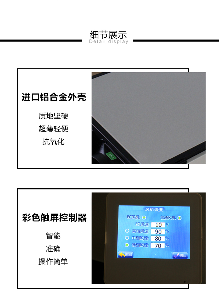 - 产品简介: 除湿量:65L/D 推荐面积:110-140㎡ 新风除湿机针对平面空调系统开发,全新风、噪声低,除湿量大,且一机多用(除湿、通风、送新风),适用于使用平面空调系统的别墅、地下室、高档公寓及写字楼等对湿度有要求之场所;整体式降噪设计:有效降低室内送风机组的噪音,压缩机与送风风机分置于箱体的两侧且采用多级降噪处理,内壁均采用吸音保温材料,从而实现宁静的运行;机组模块化设计,结构紧凑美观,安装灵活:该系列机组采用模块化设计,以模块为基本单元,从而实现以最少的产品变型满足最大范围的目标市场需求;进而使生产、安装过程得以简化;使用寿命长:压缩机在更为良好的环境下工作,寿命比一般机组可延长一倍以上;控制简单:空调系统由全新微电脑触摸控制面板控制,在房间内便可实现独立调节和控制,操作简单便利。